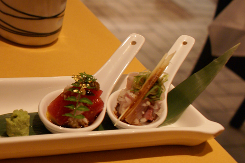 Appetizers were served first. The first dish was grilled green tea soba noodles, followed by a sashimi tray. It was by far the best sashimi I’ve had. I remember watching an episode of Arashi no Shukudai-kun and the guest had requested for rare and delicious dishes that could be eaten in a single mouthful. Those spoons they had were exactly like that!