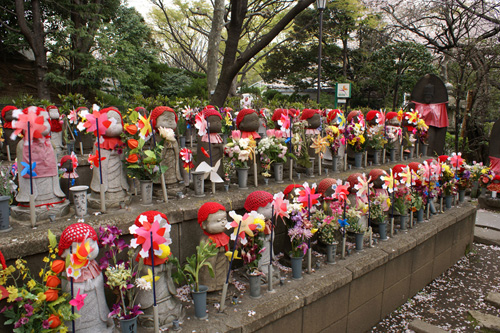 After leaving Tokyo Tower, we headed over to Zojoji Temple. The walk towards the temple was nice and peaceful, as there were so many cherry blossoms along the way. The temple itself was a lot more colourful than the ones I had seen before. There was an area towards the side which had all these little statues that resembled children. The statues are suppose to represent a Japanese divinity that guards children, especially the souls of stillborn children. I was really surprised by how colourful they kept the area and by all the ornaments they placed on top the statues.