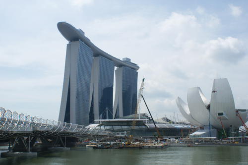 Marina Bay Sands looked massive as we approached it from a distance. The three towers seemed to loom over all the buildings in the vicinity and the swimming pool rooftop gave it a really nice outline. We couldn’t check in till the afternoon, so we left all our luggage at the concierge and made our way out. While the hotel itself was beautiful, one major downside was that it was too far from the subway station. Most hotel guests took taxis out to the tourist areas, but since we were a little conscious of our spending, we decided to walk to the subway instead. However, the walk to the closest subway in either direction (depending on which tower you leave from) took at least 15 minutes.
