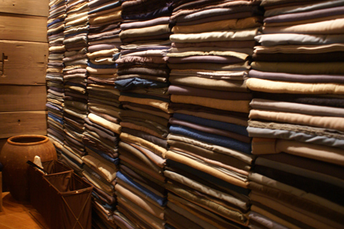 We had a room all to ourselves at the restaurant. While everyone was busy ordering off the menu, I went around and took photos of the room. One wall was completely layered with blankets. I’ve never seen anything like it! (Imagine pulling one out, hehe.) They had some really astounding interior design throughout the restaurant.