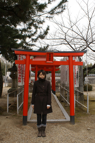 鳥居の前に立っているジェニーさん、かわいい〜!