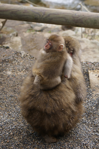 After we paid the admission fee, we went straight inside. There were monkeys everywhere! We walked along a pathway towards the onsen which the monkeys use to bath. Unfortunately there weren’t any monkeys inside when we were there, but we were already too entranced by the monkeys around us. I spent a good 20 minutes taking pictures of them. Some were frolicking around the edge of the onsen, some were eating, some were chasing each other around, some were being piggybacked, and others were just lazying around. It was a lot of fun!